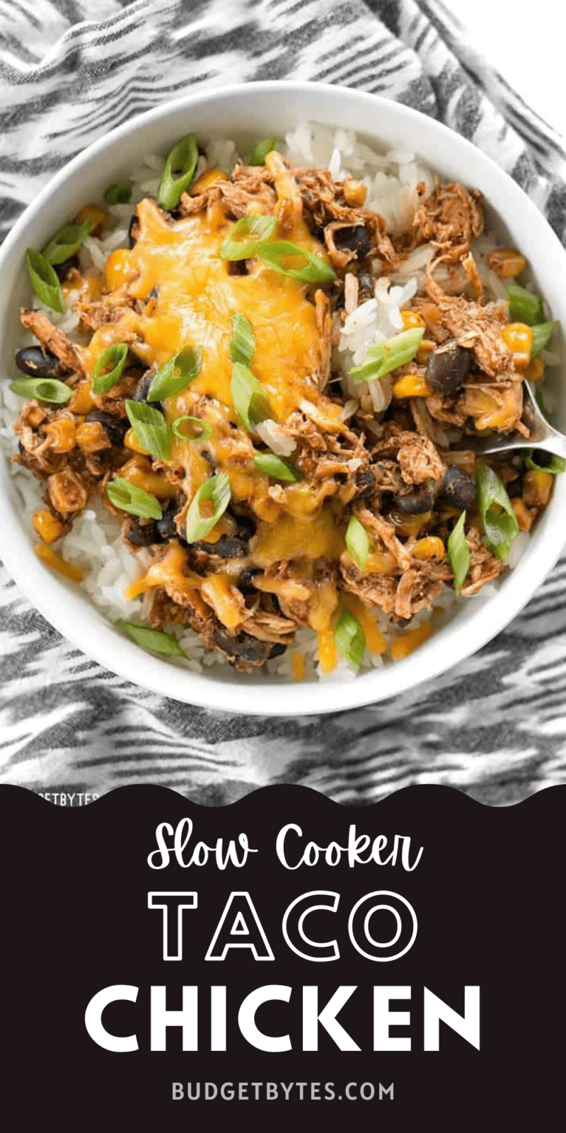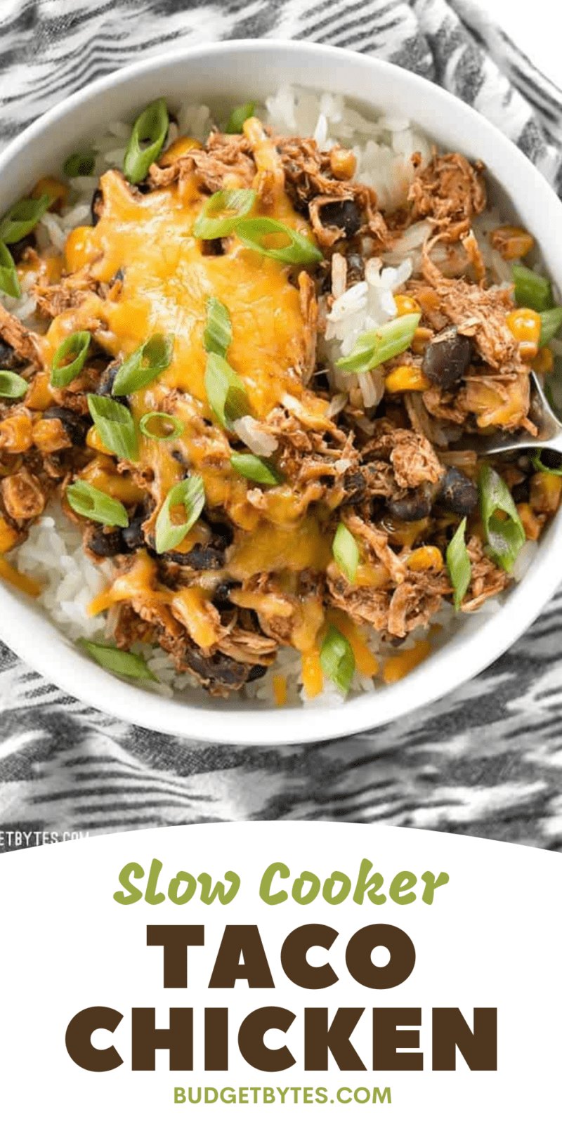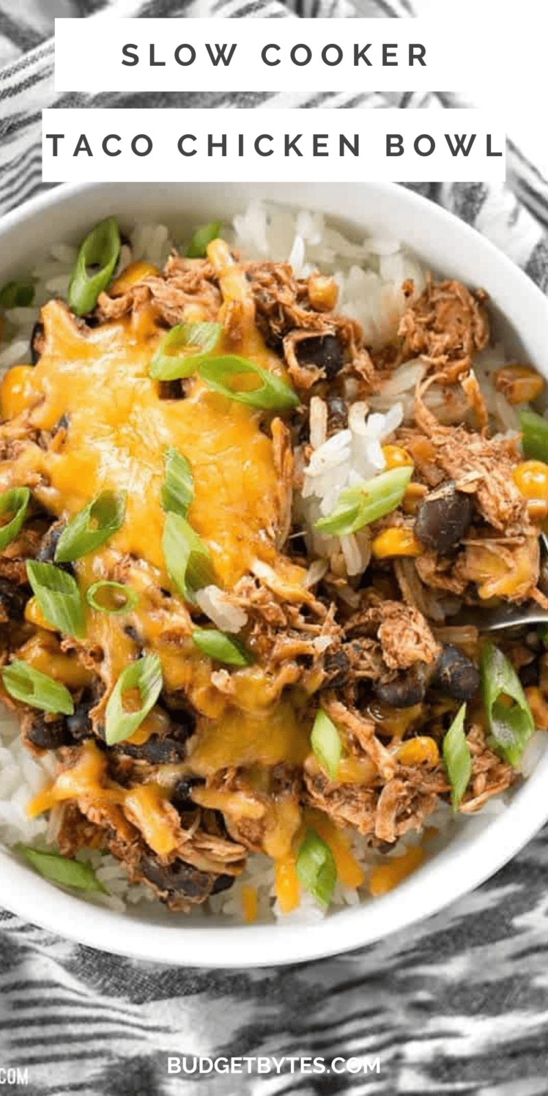 This taco chicken bowls recipe is definitely “slow-cooker 101”. It’s probably one of the first recipes that most people learn to make in their slow cooker. In fact, some version of Slow Cooker Taco Chicken Bowls is probably included in that little mini recipe book that comes with the slow cooker when you buy it. BUT, I had to post it because I know there are probably a lot of you who haven’t made it yet and I can’t bear the thought of you missing out.